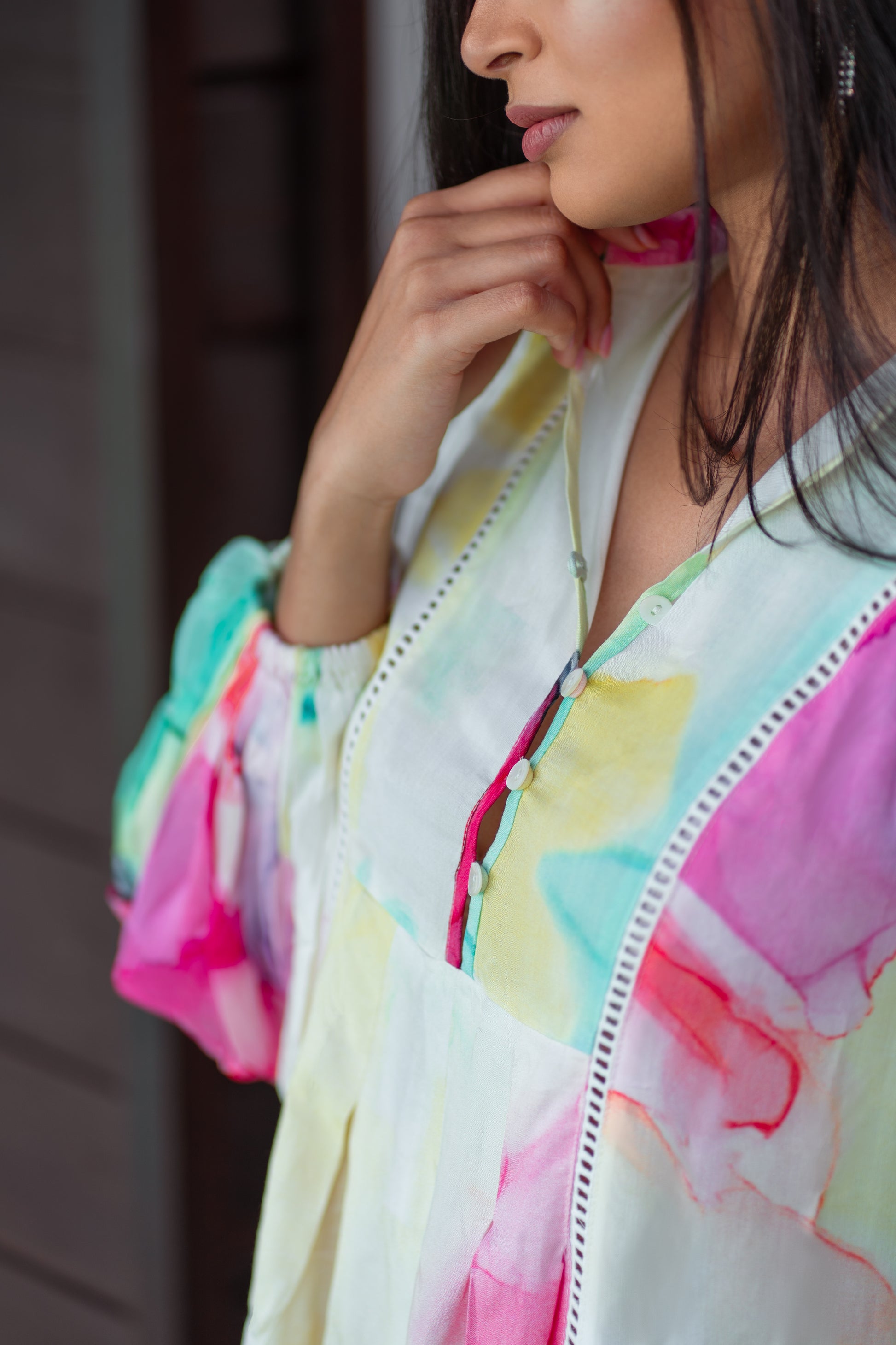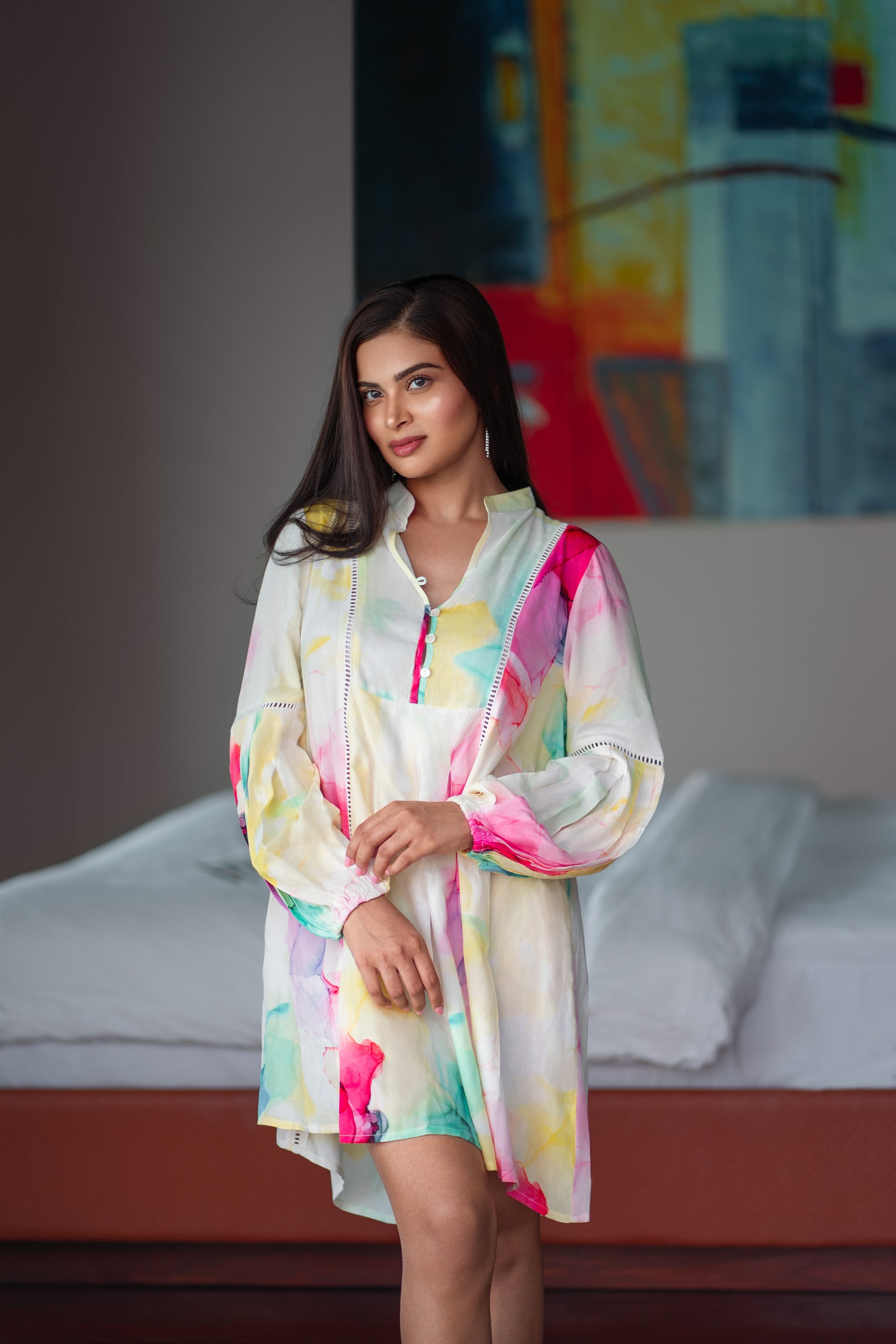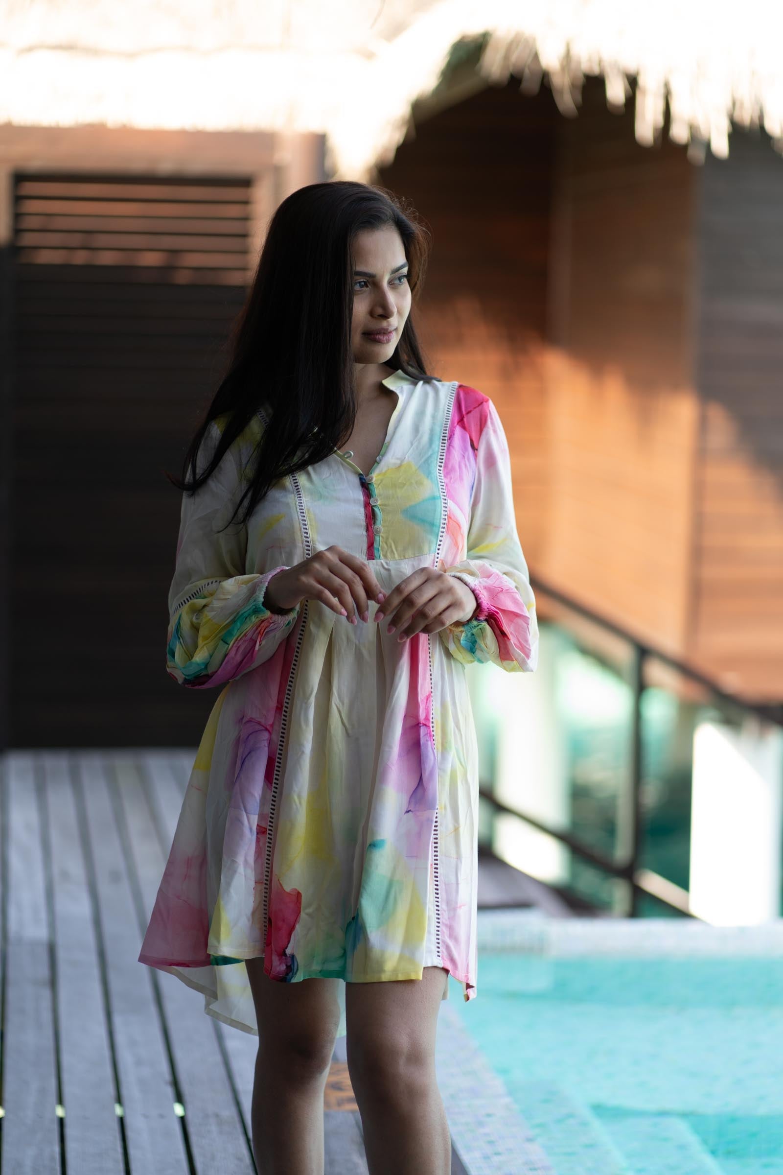 Inspired by the vibrant hues of underwater corals and tropical blossoms, Coral Bloom reflects the dreamy movement of nature in full color. This design captures the fluid grace of petals and coral fragments drifting through sunlit waters. Airy, radiant, and effortlessly feminine, Coral Bloom celebrates the warmth, playfulness, and elegance of island life.